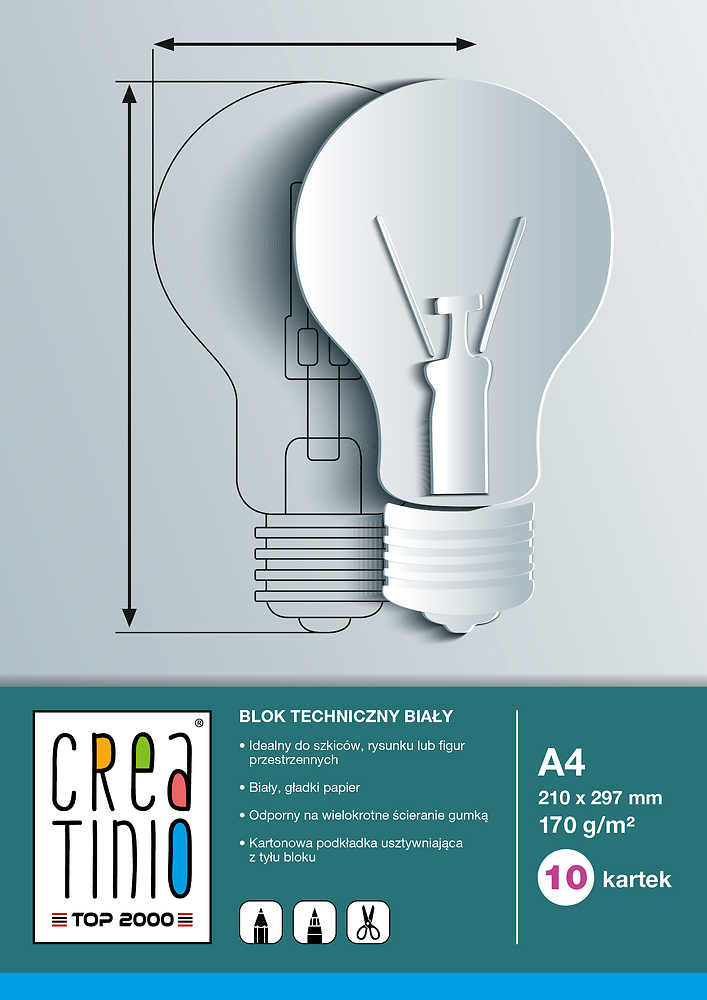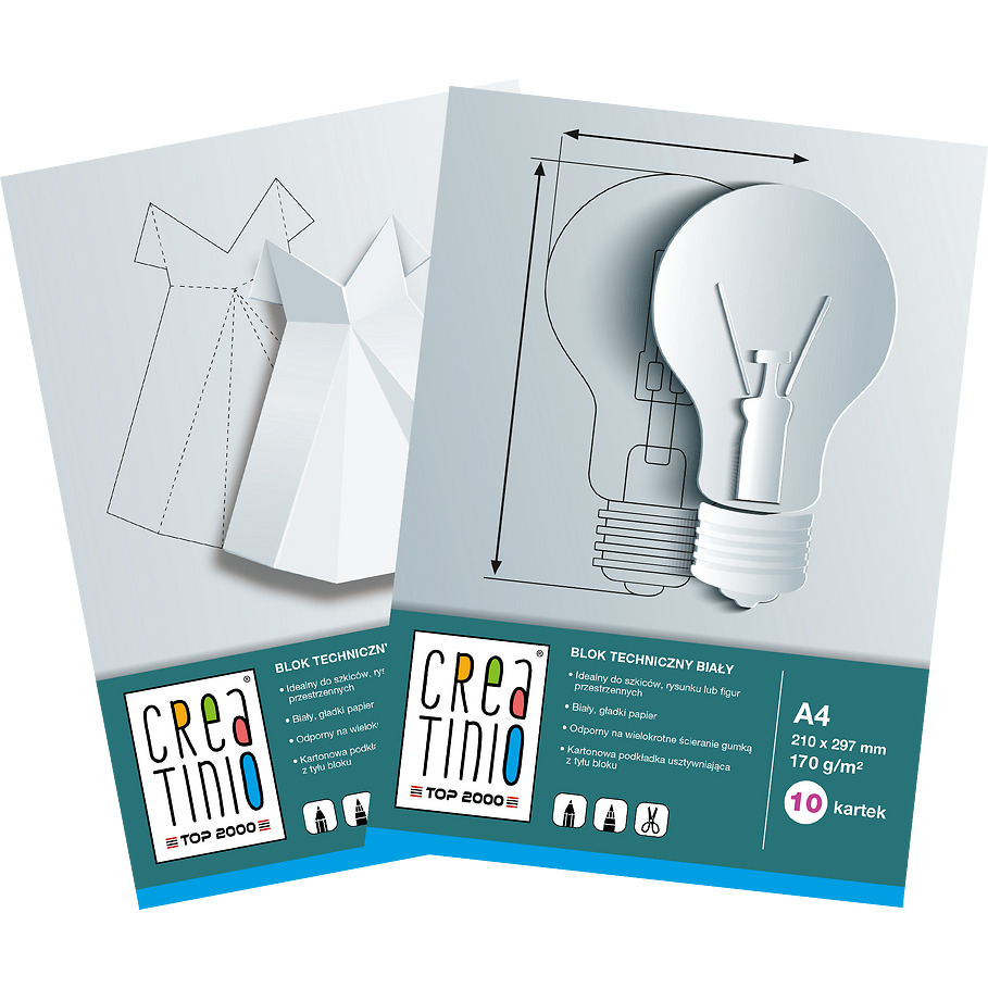 Bloki techniczne odporne na wielokrotne ścieranie gumką. Z tyłu umieszczono kartonową podkładkę usztywniającą. Idealnie nadają się do wycinanek i prac manualnych. Ciekawe okładki zachęcają i inspirują do tworzenia ciekawych prac artystycznych.