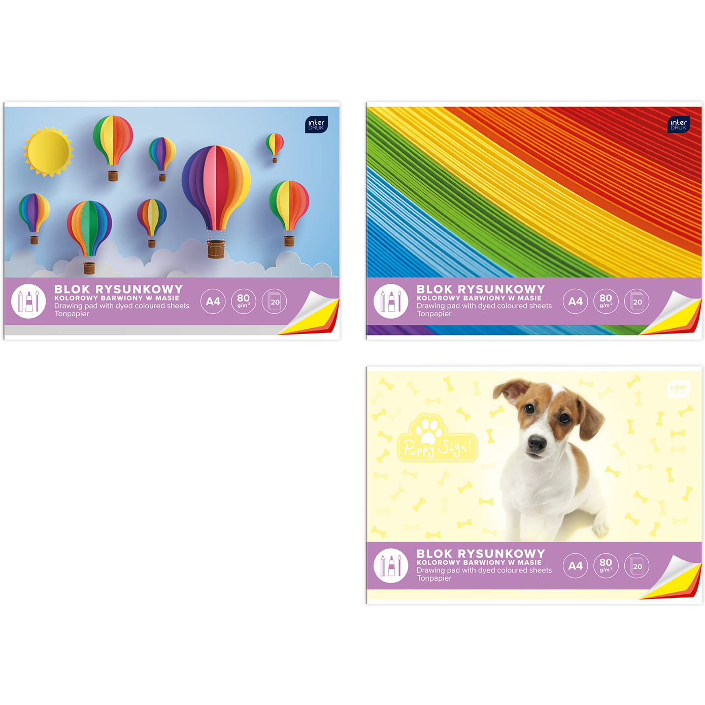 Blok rysunkowy__format: A4 lub A3__ 20 białych lub kolorowych kartek__ wysokiej jakości papier__ całość na podkładzie z grubej tektury__ okładki z papieru kredowego, przyciągające uwagę dzieci__jednostka sprzedaży 1 sztuka