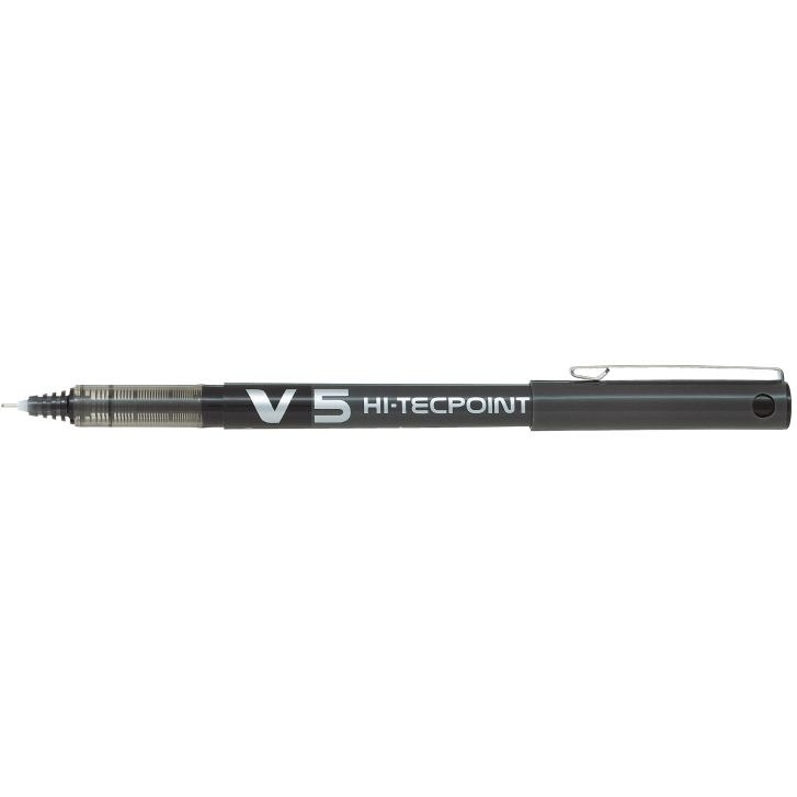 Cienkopis kulkowy z obudową w kolorze tuszu i okienkiem pozwalającym na kontrolę jego zużycia. Posiada bezpieczną wentylową skuwkę z metalowym klipem. Możliwość pisania po każdym rodzaju papieru. Polecane dla osób leworęcznych. Cienkopis V5 posiada igłową końcówkę, dzięki której linia pisania jest bardzo precyzyjna. Grubości linii pisania: 0,30 mm, długości linii pisania: 1700 m. Występuje w kolorach czarny, czerwony, niebieski, zielony._V5 produkowany jest w oparciu o technologię V-System, która obejmuje trzy filary technologiczne:_INK WRITING - Kiedy podczas pisania, ze zbiornika wydostaje się nadmiar atramentu, jest on przechowywany w specjalnie skonstruowanej końcówce z wbudowanymi mikro skrzydełkami. Dzięki temu ilość atramentu przepływającego do końcówki jest zawsze stała. Grubość pisanej linii nie zmienia się, pisze do ostatniej kropli._Hi-Tecpoint _ to niepowtarzalna końcówka wykonana ze stali nierdzewnej z zastosowaniem 3 symetrycznych wgłębień do podtrzymywania i wspierania kulki. Dzięki zastosowaniu Hi-Tecpoint, kulka podczas pisania obraca się bardzo lekko i płynnie._ATT System _ czyli system _skuwka w skuwce_. Wewnątrz zewnętrznej skuwki umieszczona jest mniejsza, która szczelnie zabezpiecza końcówkę piszącą. Dodatkowo w razie połknięcia umożliwia oddychanie._Opakowanie 16 + 4 szt. gratis_