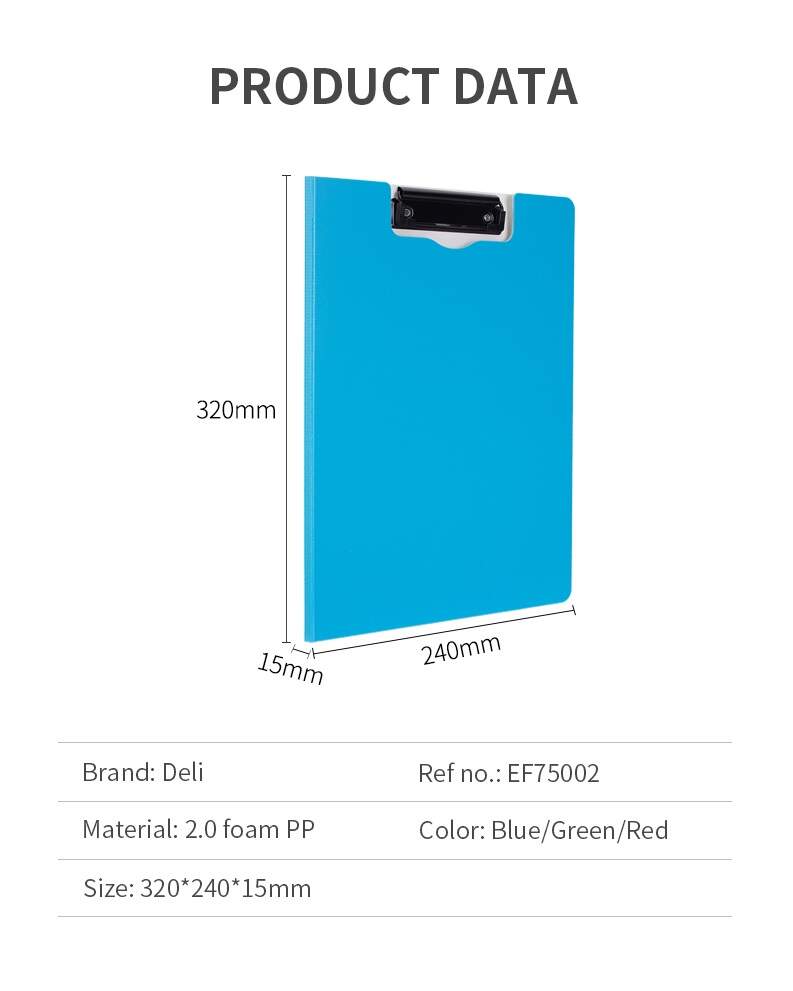 Clipboard, czyli deska z klipem, to niezbędny produkt dla każdego, kto potrzebuje trwałej i praktycznej podpory dla dokumentów. W formacie A4, doskonale sprawdzi się podczas trzymania większych grup papierów. Zbudowany z 3-warstwowej pianki pokrytej trwałym tworzywem PP, jest odporny na zachlapanie i łatwy do czyszczenia. Dostępny w trzech żywych kolorach na zewnątrz - niebieskim, zielonym lub różowym – wnętrze natomiast w kolorze śnieżnobiałym, dzięki czemu dokumenty wyglądają bardziej schludnie i uporządkowanie.