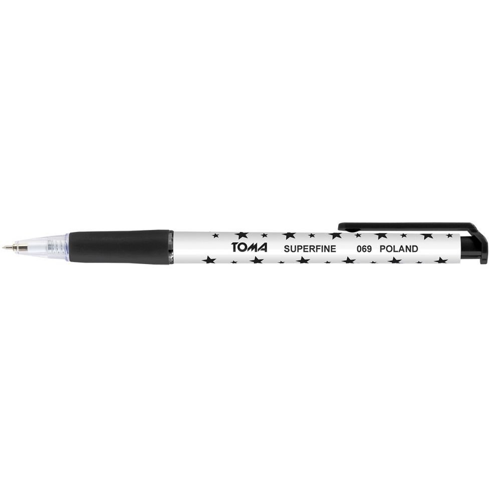 069 długopisy automatyczne SUPERFINE w gwiazdki - długopisy automatyczne w plastikowej obudowie w gwiazdki w kolorze tuszu, trwała kulka z węglików spiekanych 0,5mm, trwały mechanizm włączający, wygodny, gumowany uchwyt, 5 kolorów tuszu, WKŁAD _ szwajcarska technologia Floating Ball _ System