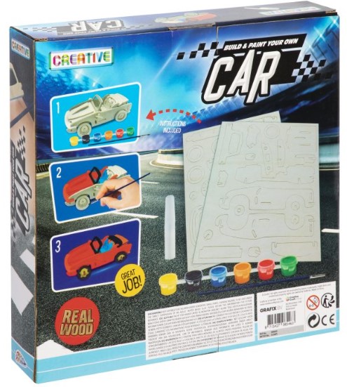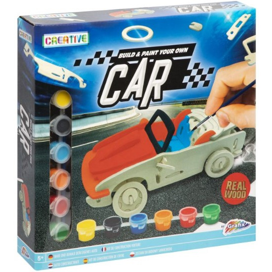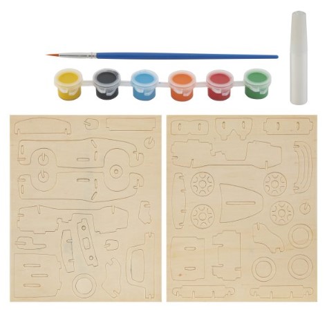 Drewniany samochód konstrukcyjny, w zestawie 6 farb i pędzelek. Wymiary opakowania: 26 cm x 5 cm x 26 cm. Pojazd do złożenia z drewnianych puzzli, efekt 3D. Drewniane elementy można zostawić surowe, bądź pomalować je załączonymi do zestawu farbami. W opakowaniu 6 kolorów farb i pędzelek. Stworzony własnoręcznie pojazd może posłużyć do zabawy lub posłużyć jako dekoracja kolekcjonerska. Przeznaczone dla dzieci powyżej 5 roku życia.