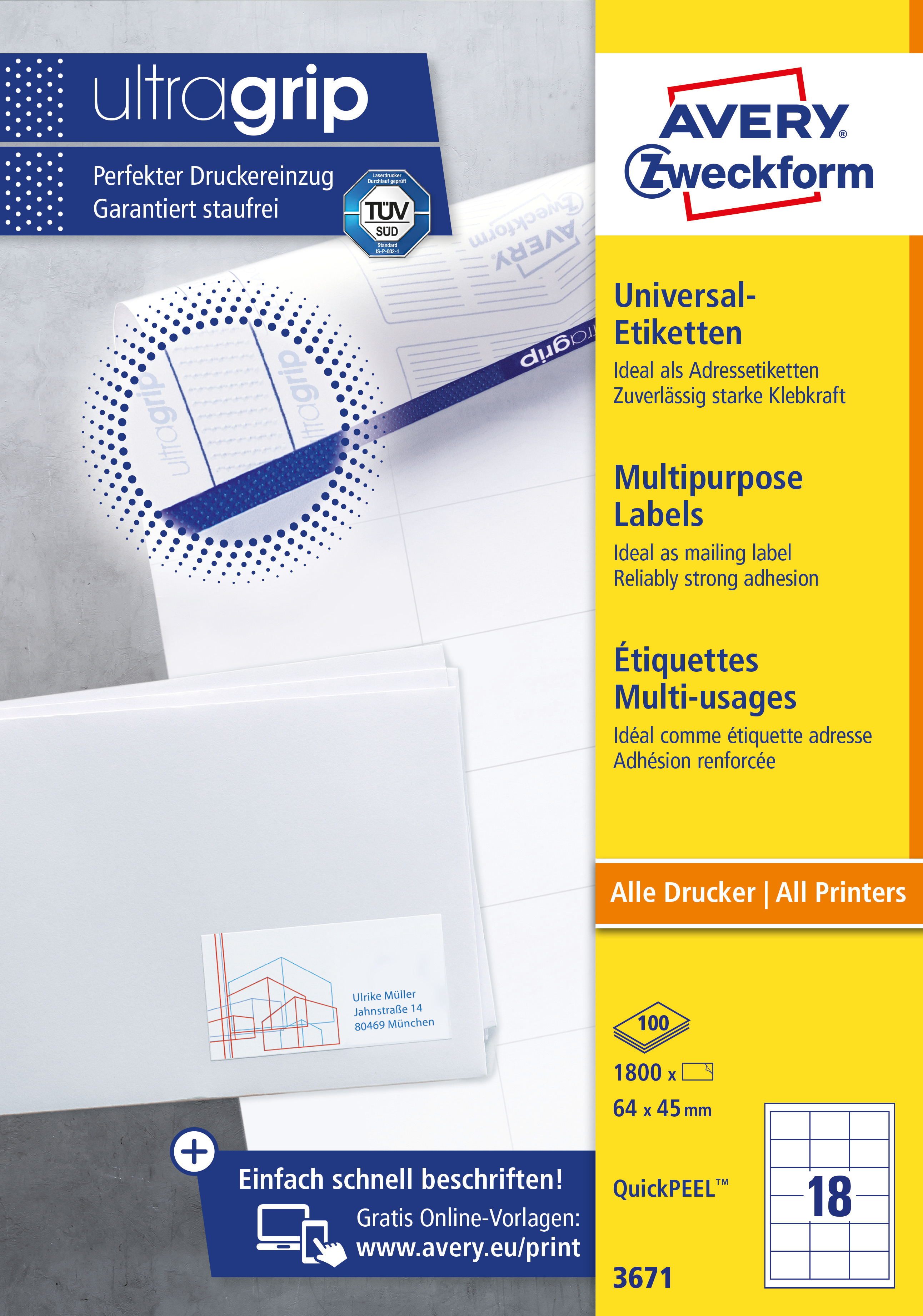 Etykieta A4 białe (100 arkuszy) 64x45mm 3671 AVERY ZWECKFORM Ultra GripEtykieta A4 białe (100 arkuszy) 64x45mm 3671 AVERY ZWECKFORM Ultra GripEtykieta A4 białe (100 arkuszy) 64x45mm 3671 AVERY ZWECKFORM Ultra GripEtykieta A4 białe (100 arkuszy) 64x45mm 3671 AVERY ZWECKFORM Ultra Grip