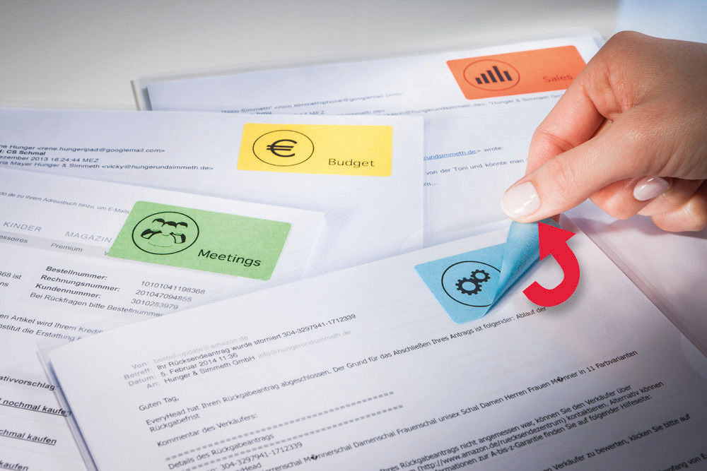 • Doskonale nadają się do czasowego, tematycznego oznaczania dokumentów oraz sprzętów biurowych.