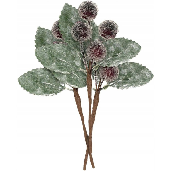 Gałązki oszronionej czarnej jarzębiny wyglądające jak prawdziwe. Idealnie sprawdzą się, kiedy zastosujesz je do stworzenia świątecznego stroika, wieńca zawieszonego na drzwiach czy do ozdobienia prezentów lub choinki. Doskonały dodatek do prac ręcznych i nie tylko. Dekoracje stworzone wraz z tymi gałązkami będą miały niepowtarzalny świąteczny klimat. Jarzębina posiada elastyczny drucik, dzięki któremu łatwo przymocujesz ją do różnych dekoracji.