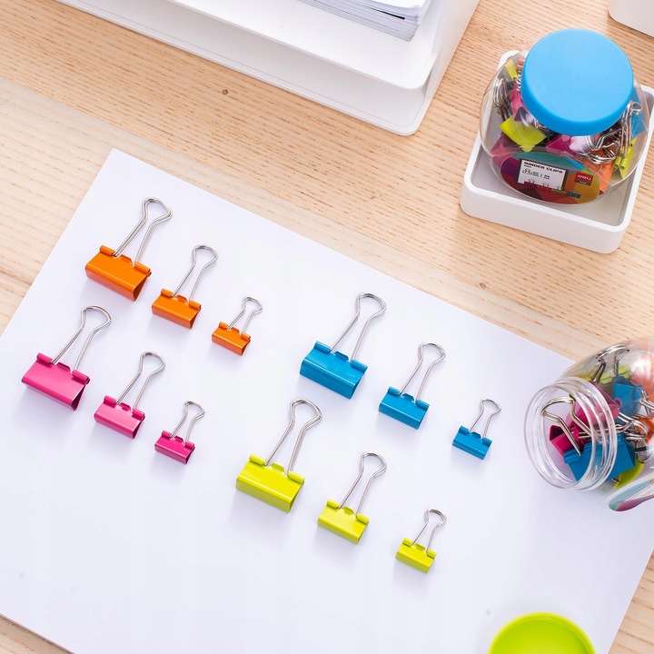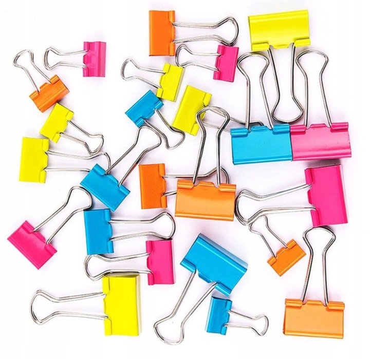 - Rozmiary klipsów: 15 mm, 19 mm, 25 mm (po 2 sztuki z każdego rozmiaru i koloru)