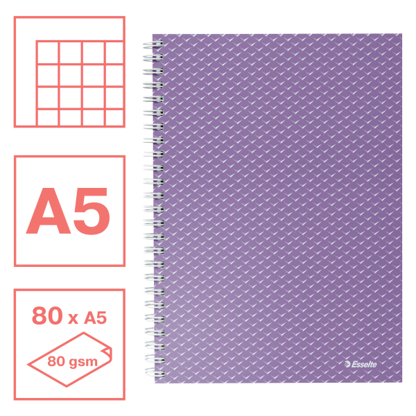 Wybierz radosne kolory natury i stwórz pozytywną przestrzeń do pracy dzięki produktom z kolekcji Colour'Breeze firmy Esselte. Zaprojektowane są w sposób mający zapewnić Ci dobrą organizację i motywację podczas nauki lub pracy, a ich nowoczesne wykończenie i relaksujące kolory sprawią, że będziesz marzyć o kolejnej przygodzie. Kołonotatnik Esselte Colour'Breeze w formacie A5 z ciekawie zaprojektowaną kartonową okładką i podwójną spiralą jest idealny do codziennego użytku w domu, szkole lub w biurze. Zawiera 80 kartek w kratkę, z mikroperforacją i dziurkami umożliwiającymi łatwe i szybkie wyrwanie kartki z notatnika i wpięcie do segregatora. 160 stron z nadrukowaną kratką w dyskretnym szarym kolorze i zewnętrznym marginesem do zamieszczania najważniejszych informacji lub zaznaczania błędów w tekście. Kołonotatnik umożliwia otwieranie w zakresie 360°, dzięki czemu idealnie nadaje się do robienia notatek, gdy jesteś w ruchu. Dostępny w gamie żywych kolorów i wykończony nowoczesnym tłoczonym wzorem Colour'Breeze z metalicznym wykończeniem. Poczuj powiew świeżości w swoim życiu!