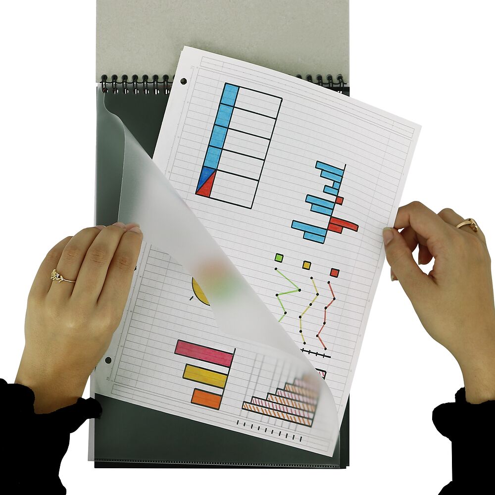 Polipropylenowa okladka zabezpiecza ich wnetrze, a podwójna spirala umozliwia otwarcie na plasko.