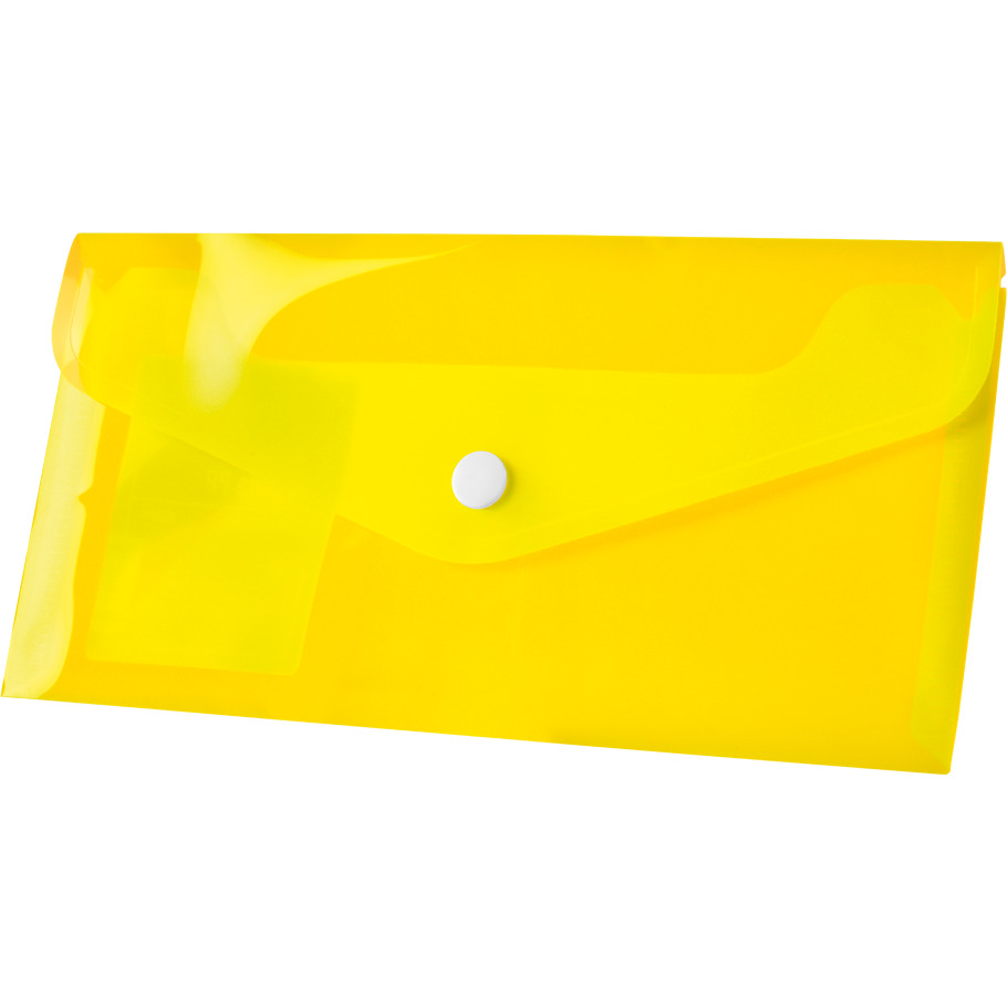 Koperta PP na zatrzask, mieszcząca format DL. Wymiary koperty: 220x110 mm, grubość tworzywa: 0,14 mm. Dostępna w czterech kolorach (niebieski, czerwony, pomarańczowy, żółty).