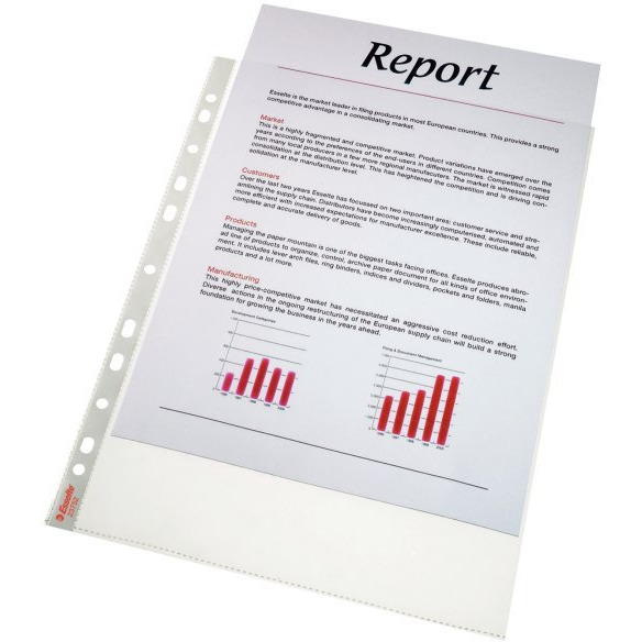 Mocne koszulki do stalego, codziennego uzytku. Pasek z multi-perforacją pozwala na wygodne przechowywanie dokumentów we wszystkich rodzajach segregatorów.