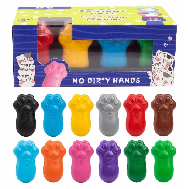Kredki woskowe Kocie Łapki So Many Cats od M&G to wyjątkowe kredki w kształcie kociej łapki, idealne dla najmłodszych artystów. Kredki są miękkie, wygodne do trzymania, a także wytrzymałe i odporne na złamania. Dodatkowo nie brudzą rąk, co sprawia, że rysowanie nimi jest czystą przyjemnością.