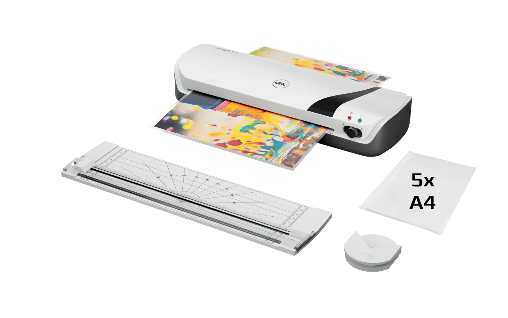 Zestaw 4 w 1 zawiera laminator A4 oraz przydatne w codziennej laminacji narzędzia - idealny do użytku domowego lub w szkole. W zestawie znajduje się lekki i kompaktowy laminator GBC Inspire+ A4 , narzędzie do zaokrąglania ostrych narożników, trymer do docinania dokumentów do żądanego formatu oraz pakiet startowy, zawierający 5 folii do laminacji w formacie A4 (2 x 75 mikronów). Model Inspire+ jest łatwy w obsłudze za pomocą jednego przełącznika i ma krótki, 4-minutowy czas nagrzewania. Laminuje foliami o grubości do 2 x 125 mikronów, nadając dokumentom elegancki wygląd za każdym razem. Posiada również tryb laminacji na zimno przeznaczony dla materiałów wrażliwych na wysoką temperaturę. Laminator w jednej chwili pozwoli Ci błysnąć kreatywnością - wystarczy Twoja wyobraźnia! Kolor biały.