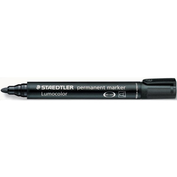 Marker Lumocolor_ permanent - nie rozmazuje się i jest wodoodporny na większości powierzchni, - szybkoschnący, idealny także dla osób leworęcznych, - atrament z formułą DRY SAFE: może pozostawać bez skuwki przez kilka dni i nie wysycha (test ISO 554), - odporny na blaknięcie (na papierze kolory czarny i zielony nawet przez 10 lat), - czarny i zielony są odporne na działanie czynników atmosferycznych, - praktycznie bezzapachowy, - z klipsem, - mocna końcówka, -obudowa i skuwka wykonana z PP gwarantują wysoką odporność na zniszczenie, - może być używany podczas lotu samolotem _ automatyczne wyrównywanie się ciśnienia chroni pisaki przed wylaniem atramentu podczas lotu; - 2 grubości linii: krągła końcówka ok. 2 mm, ścięta końcówka ok. 2 lub 5 mm