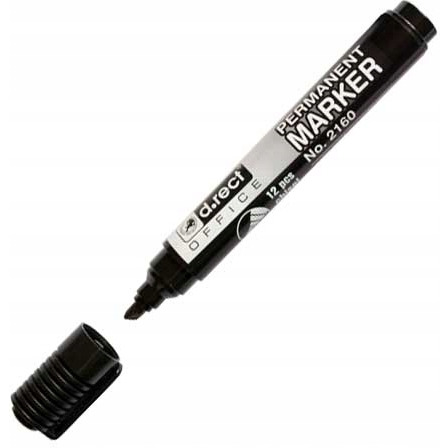 Permanentny marker z wodoodpornym, nietoksycznym, szybkoschnącym tuszem. Przeznaczony do pisania po różnych powierzchniach np. papierze, kartonie, metalu, drewnie, szkle i plastiku. Wyposażona w plastikową obudowę oraz skuwkę z krótkim klipsem, umożliwiającą wpięcie w kieszeń. Bezpieczny tusz, nie zawiera ksylenu ani toluenu. Ścięta końcówka pozwala na prowadzenie linii różnej grubości. Końcówka ścięta 1-5 mm.