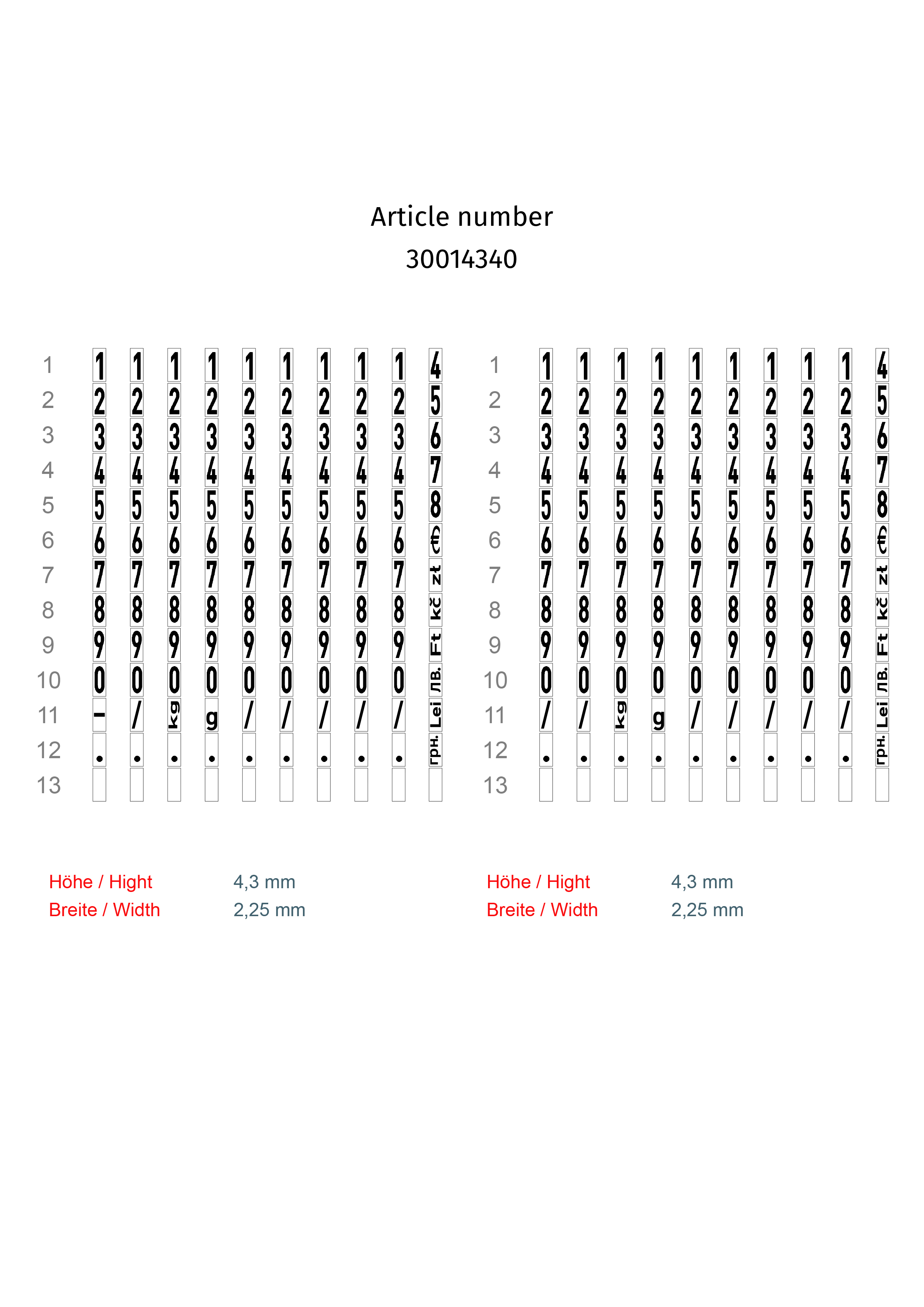 Dwurzędowa metkownica cenowa z 10 znakami alfanumerycznymi zadruku na rząd, o wysokości znaku 4,3 mm