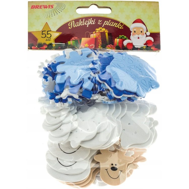 NAKLEJKI BN RENIFERY ŚNIEŻYNKI PIANKOWE 55 sztuk BREWIS PVX04