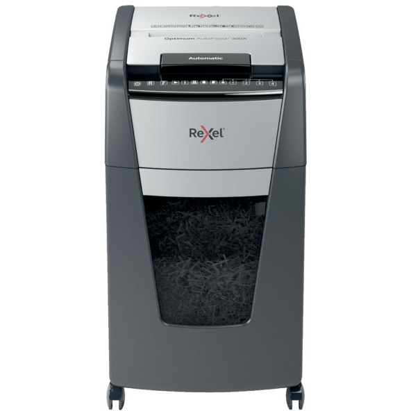 Niszczarka automatyczna do papieru Optimum AutoFeed+ 300X jednorazowo niszczy automatycznie do 300 kartek A4 (80 gsm), tnąc arkusze na konfetti (o wymiarach 4 x 26 mm), co zapewnia poziom bezpieczeństwa P-4. Wyposażona jest w automatyczny podajnik i 60-litrowy pojemnik na ścinki, co sprawia, że idealnie nadaje się do użytku biurowego. Nie wymaga ręcznego podawania papieru ani wcześniejszego usuwania zszywek i spinaczy - ta automatyczna niszczarka całą pracę wykona za Ciebie.