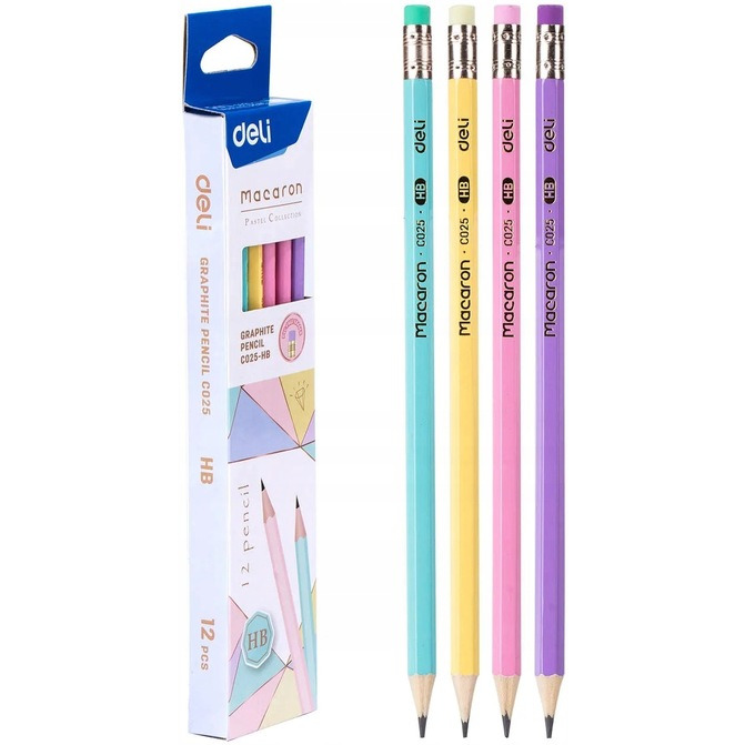 Szukasz stylowego i praktycznego zestawu ołówków? Nie szukaj dalej niż seria Deli Macaron! Ten zestaw 12 ołówków EC025-HB w modnych pastelowych kolorach i z wbudowaną gumką. Klasyczna grubość ołówka HB sprawia, że doskonale sprawdzą się one na co dzień oraz jako ołówek do szkicowania i rysowania.