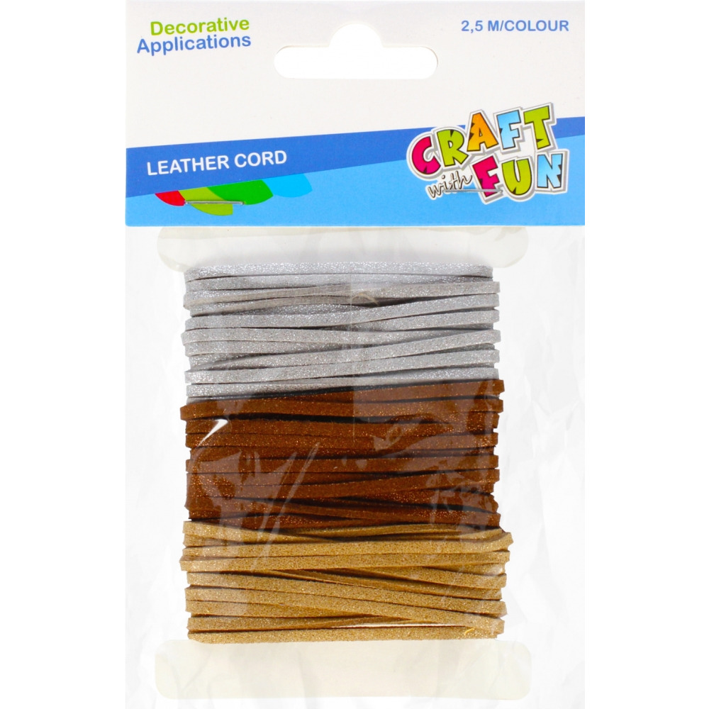 Zawartość opakowania: 3 kolory rzemyków każdy o długości 2,5 m.