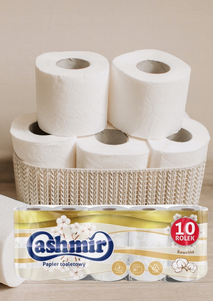 Odkryj niezwykłą miękkość i delikatność papieru toaletowego Cashmir. Dzięki zawartości bawełny, każdorazowe użycie to przyjemność dla skóry. 10 rolek w opakowaniu to ekonomiczne rozwiązanie dla całej rodziny.