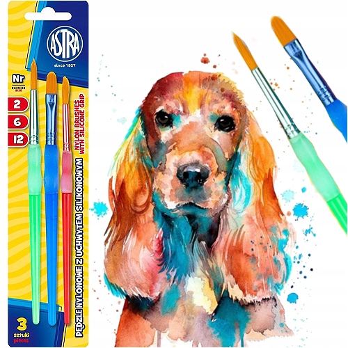 Pędzelki szkolne zestaw 3 sztuki rozmiar nr. 2,6,12 315023002 ASTRA