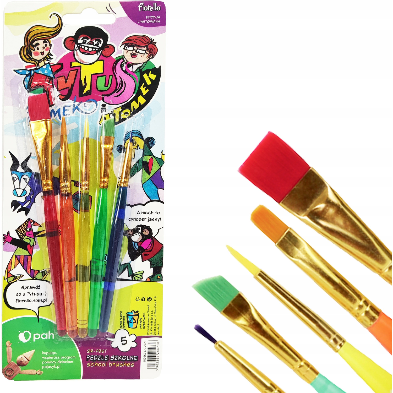 Zestaw pedzli plaskich i okrąglowych z limitowanej edycji Tytus, Romek i A'Tomek idealny do róznych technik malarskich.