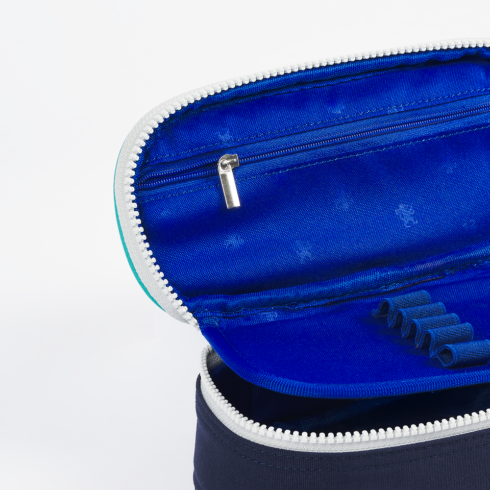 - Wewnętrzna przekładka z gumkami umożliwia łatwe segregowanie przyborów