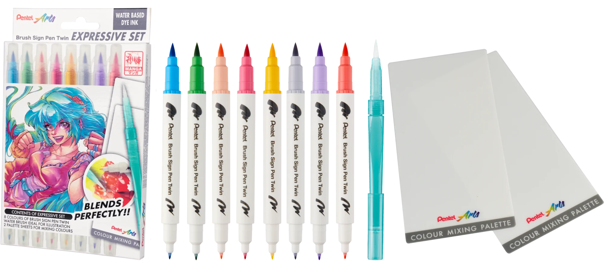 Manga i anime to nie tylko opowieści – to wyjątkowa kultura wizualna, w której ogromną rolę odgrywa ekspresja, dynamika i kolor. Dwustronne pisaki w zestawie wypełnione są wodnym tuszem, który doskonale się blenduje. W połączeniu z paletkami do mieszania i pędzelkiem na wodę uzyskasz niezwykłe efekty cieniowania – od subtelnych przejść po głębokie kontrasty.