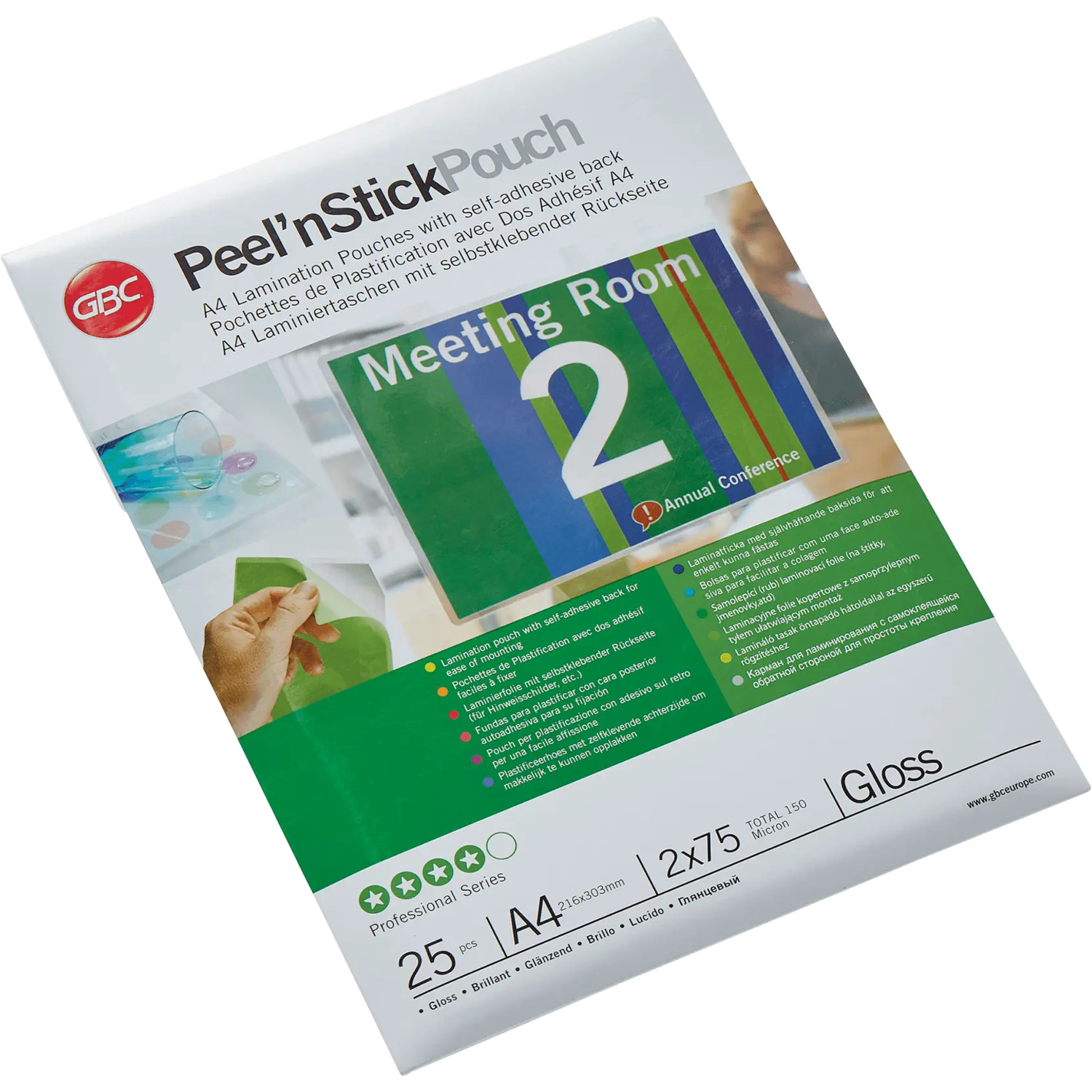 Samoprzylepne folie do laminacji Peel'n Stick idealnie nadają się do szybkiego przygotowania profesjonalnego i wyróżniającego się oznakowania. Folia przykleja się do większości powierzchni łącznie ze szkłem, metalem i tekturą. Wystarczy odkleić ochronną warstwę papieru, aby umożliwić naklejenie folii. Folie 2 x 75 mikronów, z połyskiem. Format A4. Opakowanie: 25 szt.