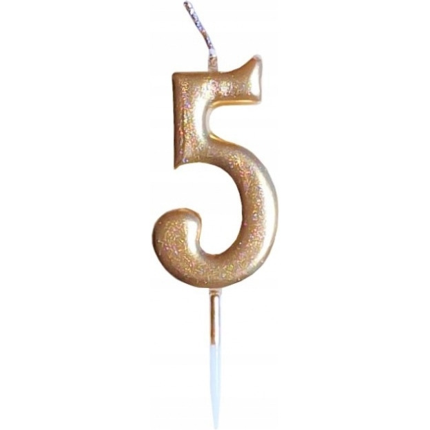 Zlota świeczka z cyferką 5 to idealny dodatek do uroczystości urodzinowych. Zapewni trwalośc i stabilnośc podczas palenia.
