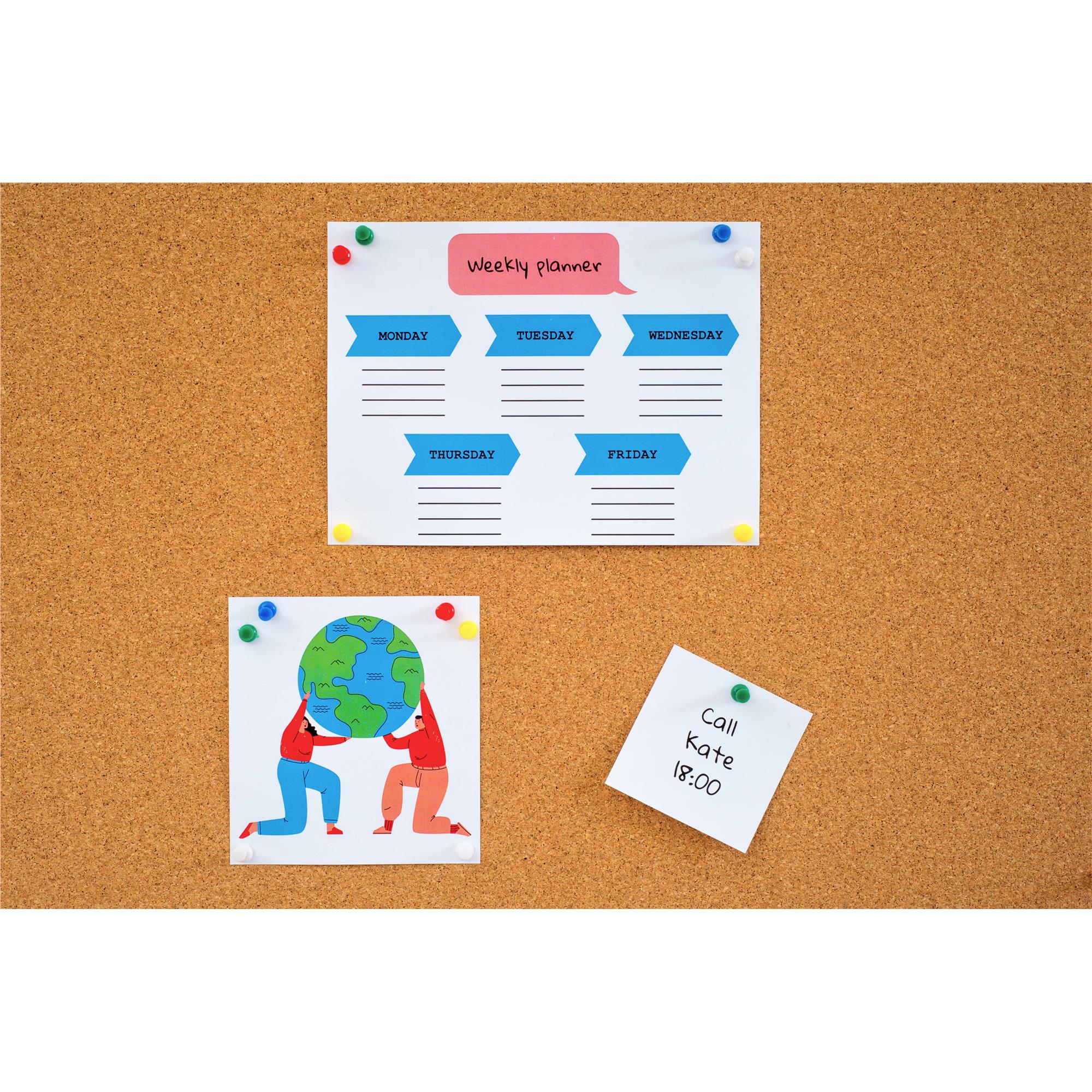Za pomocą pinezek na tablicy korkowej możemy umieszczać ogłoszenia, zdjęcia, plakaty i wiele innych dokumentów.