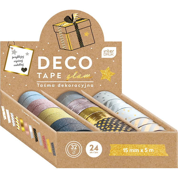 Taśma dekoracyjna 5m GLAM 12 wzorów opakowanie 24sztuki INTERDRUK