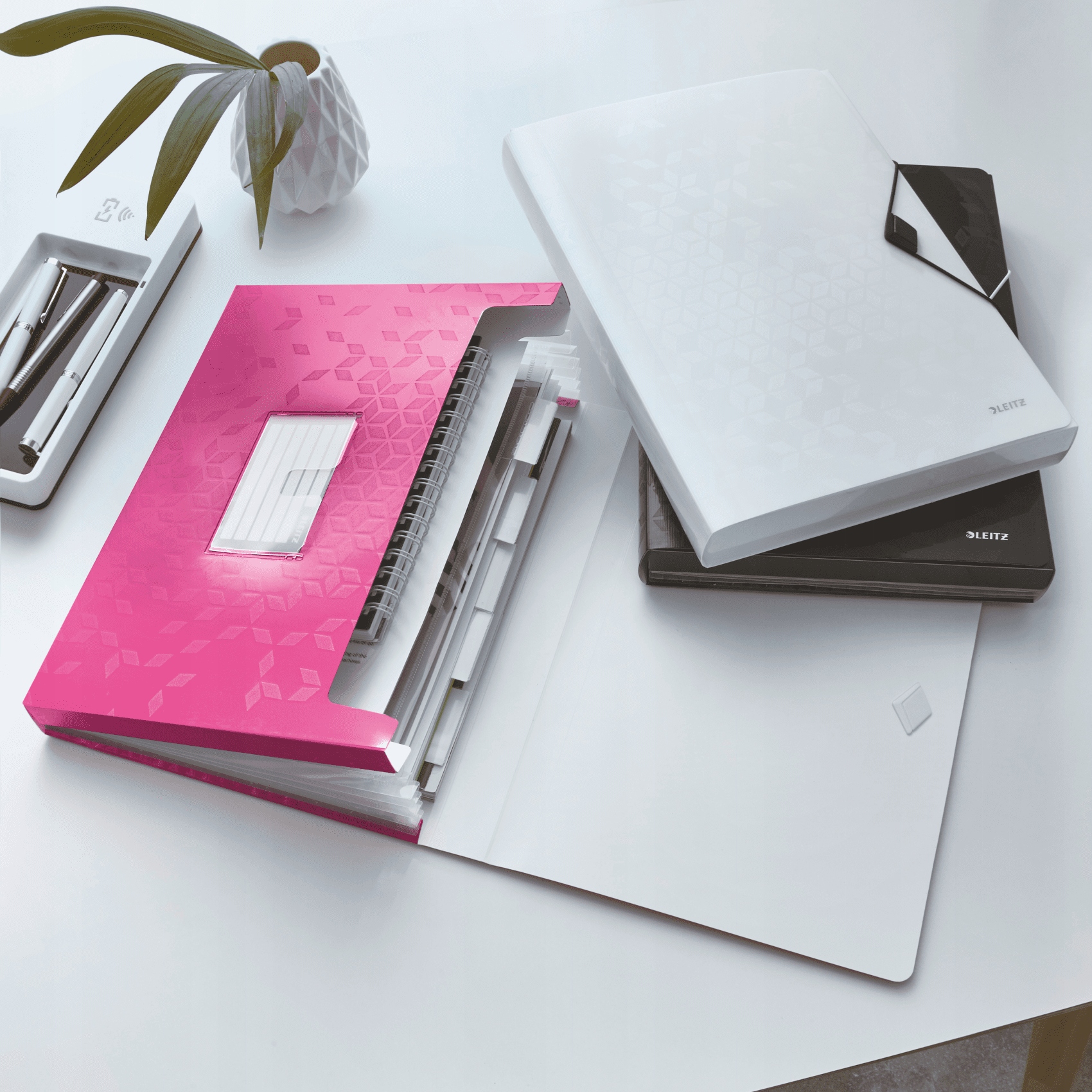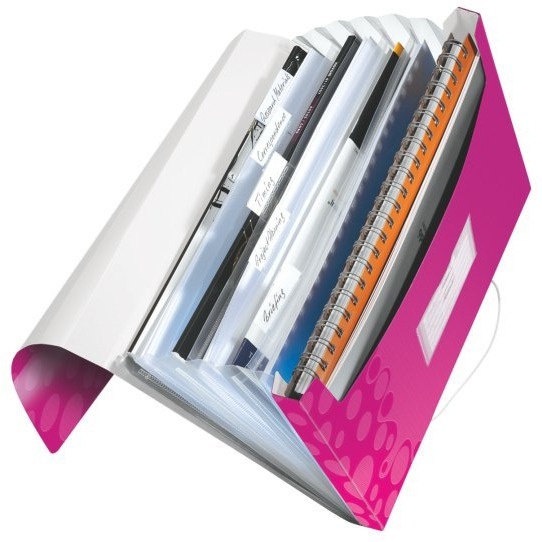 Wysokiej jakości teczka z przegródkami z lekkiego polipropylenu, w zywych kolorach WOW, ze stylowym, geometrycznym wzorem. Sprawdzi sie zarówno w domu, jak i w biurze.
