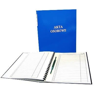 Na okładce umieszczony jest złoty nadruk "Akta osobowe", wykonany metodą tłoczenia na gorąco.