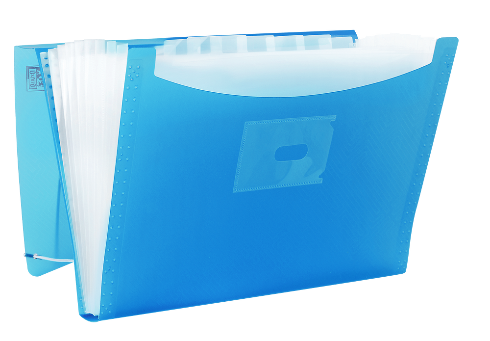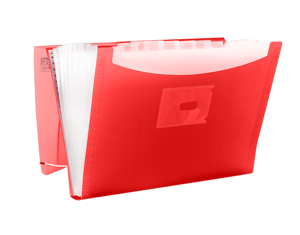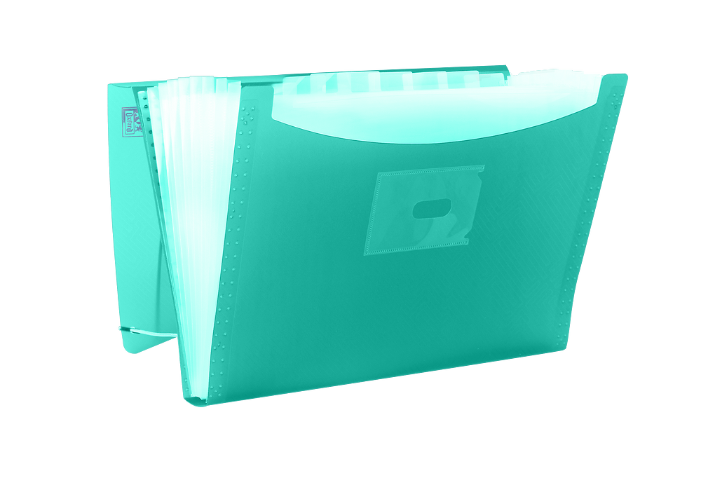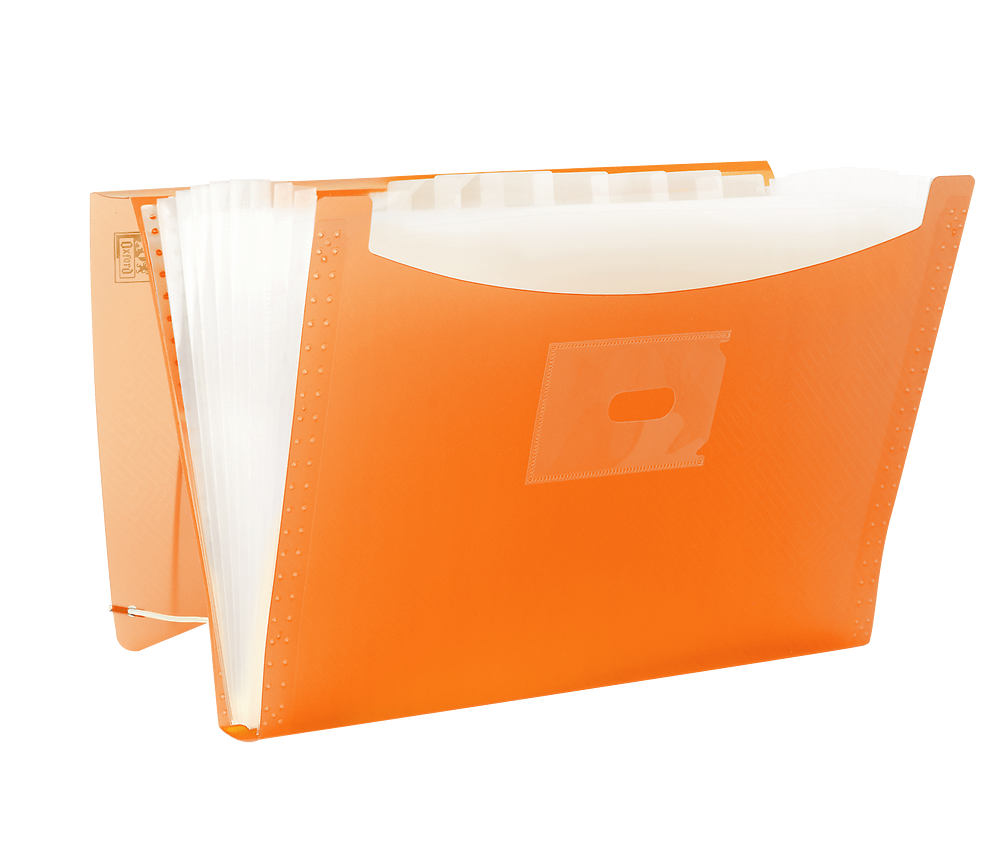 Teczka harmonijkowa na dokumenty, wykonana z przezroczystego polipropylenu. 12 przegródek umożliwia segregację dokumentów na kilka kategorii, co pomaga zachować porządek. Na grzbiecie teczki znajduje się etykieta opisowa dla łatwiejszej identyfikacji zawartości. Narożne gumki zamykające chronią zawartość teczki.