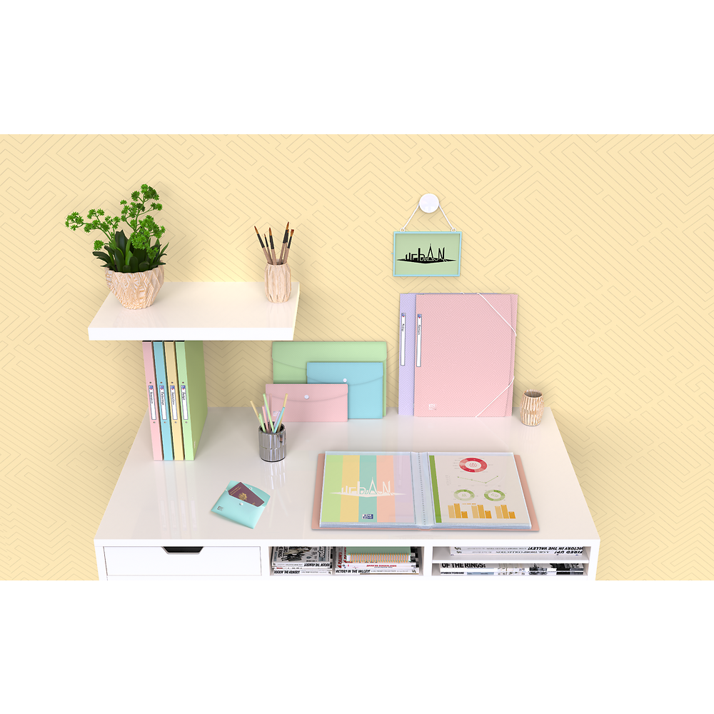 Poznaj teczkę kopertową Oxford Urban – stylowe i praktyczne rozwiązanie, które doda lekkości każdej przestrzeni biurowej. Wykonana z trwałego polipropylenu, teczka urzeka pastelowymi odcieniami oraz subtelnym tłoczeniem przypominającym labirynt, które nadaje jej wyjątkowego charakteru i nowoczesnego wyglądu. Idealna do przechowywania dokumentów formatu A6, teczka Oxford Urban zapewnia bezpieczne zamknięcie na zatrzask, dzięki czemu Twoje dokumenty zawsze pozostają na swoim miejscu. Elegancka kolorystyka i precyzyjne wykończenie sprawiają, że produkt ten idealnie komponuje się z innymi elementami linii Urban, tworząc spójną i estetyczną całość. Wprowadź do swojego biura przyjemny, pastelowy akcent, który doda elegancji i wprowadzi odrobinę spokoju do codziennej organizacji.