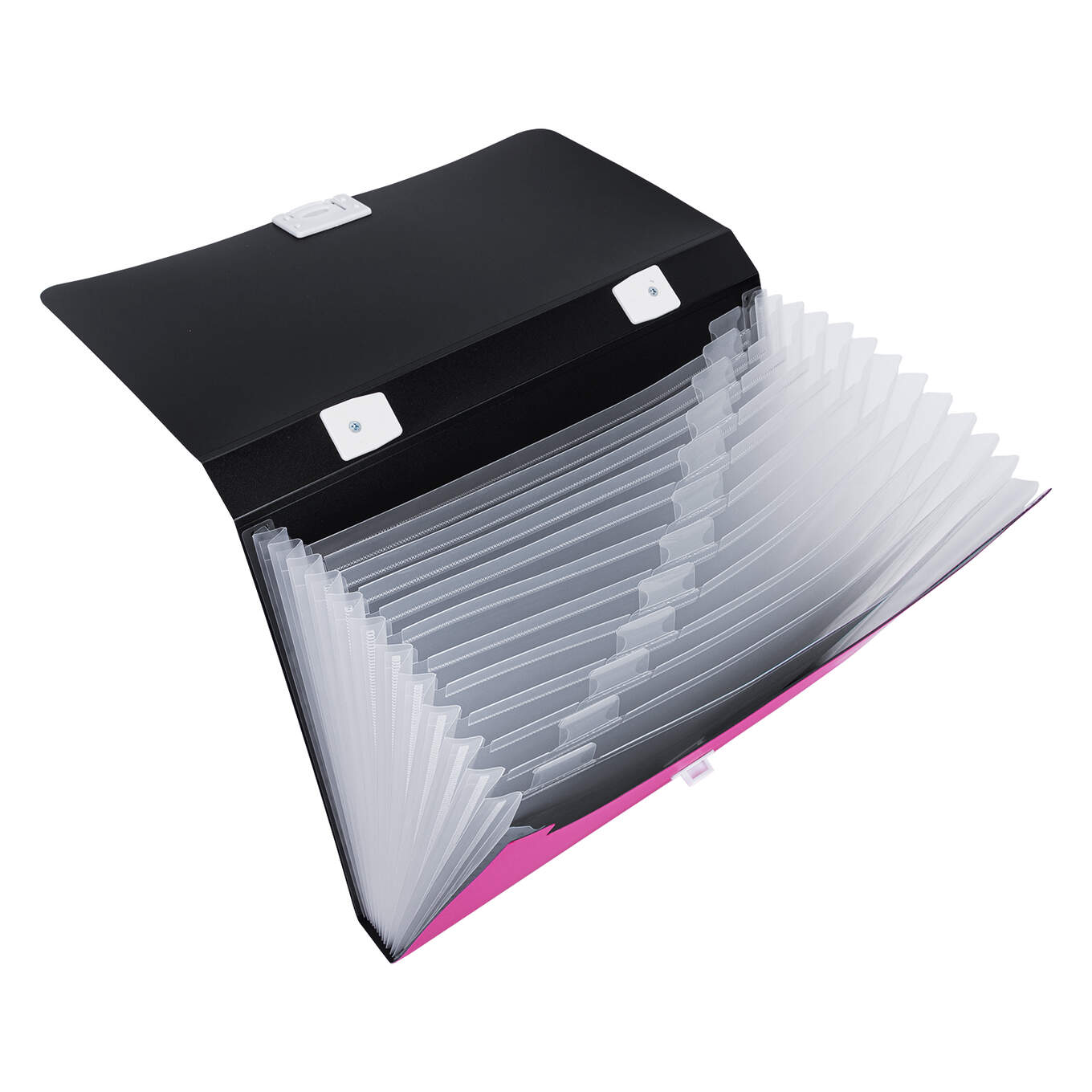 Teczka z rączką to coś, co zapewni dużą mobilność wszelkich przedmiotów, jakie w niej umieścimy. Wykonana z tworzywa PP grubości 0,75 mm dostępna jest w 4 wariantach kolorystycznych – niebieskim, zielonym, różowym lub pomarańczowym. Intensywne kolory przełamane są białymi detalami i czarnym wnętrzem. Dla pełnej organizacji mamy do dyspozycji 13 pojemnych przegród, która pomieszczą w sobie wiele arkuszy A4. Ich przeźroczysty walor sprawia, że z łatwością dojrzymy, co takie umieściliśmy wcześniej w każdej z nich, przy tym zachowując prywatność na wzrok obcych. Dla jeszcze bardziej ułatwionej segregacji, każda z kieszeni posiada zakładkę indeksującą. Z taką pomocą nie zapomnimy co, gdzie się znajduje.