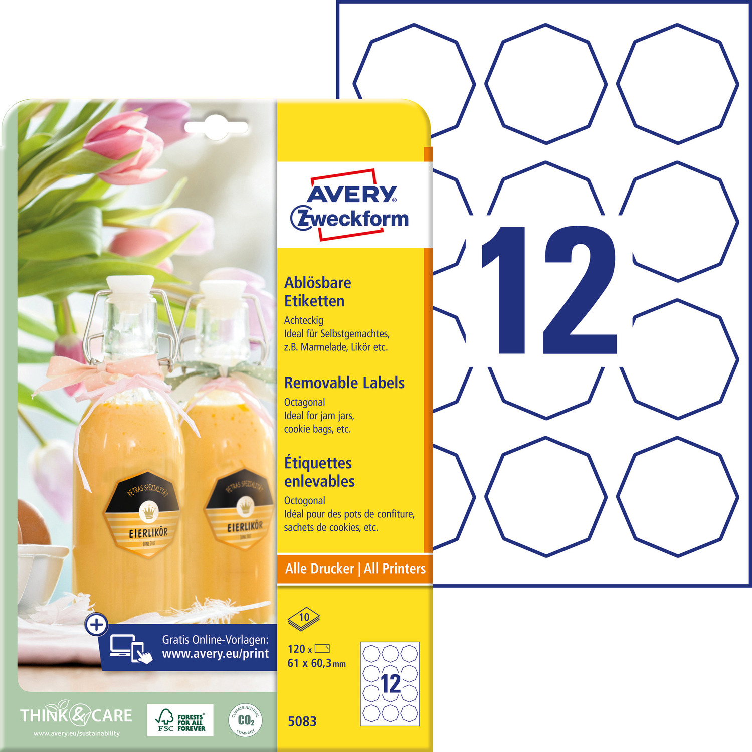 Strona główna » Etykiety » Etykiety » Usuwalne etykiety na przetwory A4 10 ark. 61 x 60,3 mm ośmiokątne białe 5083 AVERY ZWECKFORM