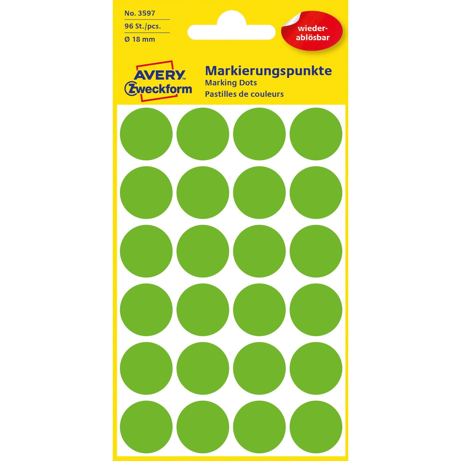 Usuwalne kółka 18mm 96szt./op. zielone 3597 AVERY ZWECKFORM