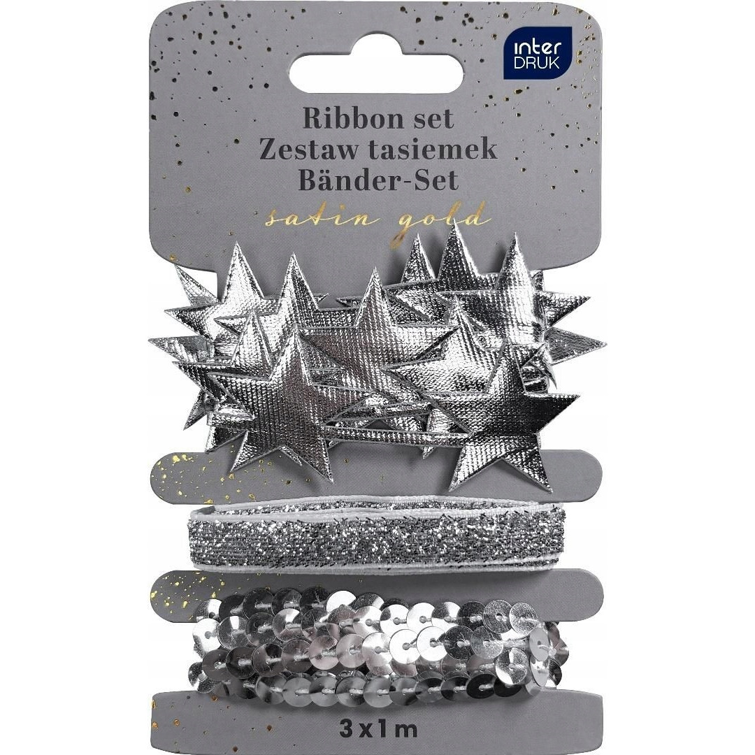 Komplet dekoracyjnych tasiemek w palecie Silver Satin Gold do eleganckiego wykańczania prezentów i projektów DIY. Miękkie i elastyczne taśmy łatwo się wiąże, formuje i przycina, dzięki czemu świetnie sprawdzają się w kokardach, dekoracjach świątecznych i scrapbookingu. Delikatny połysk podkreśla charakter aranżacji, a wygodne odcinki ułatwiają pracę.