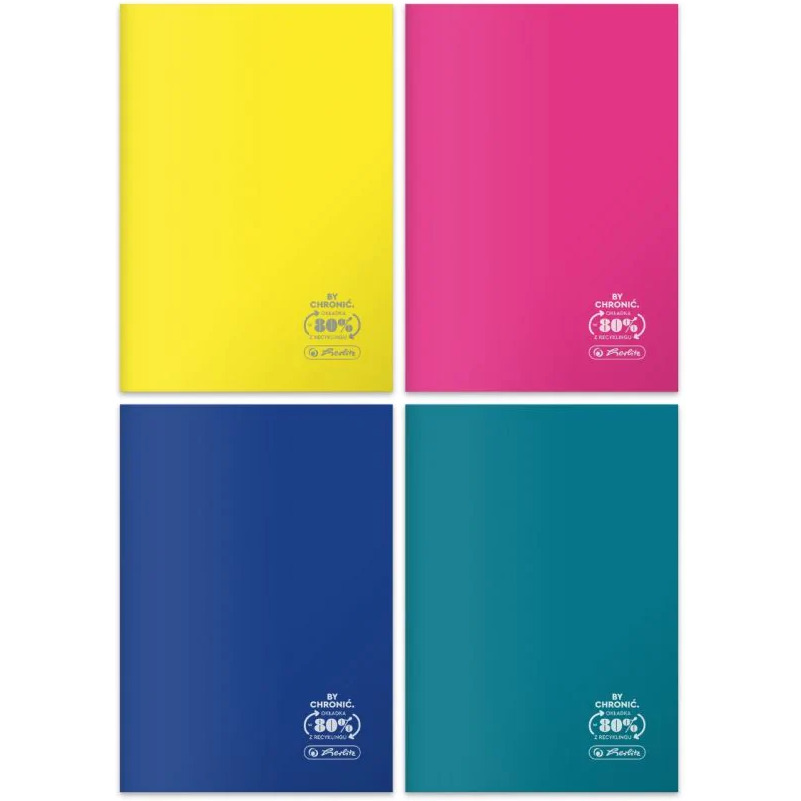 Kolekcja ECO PP Colors Produkt z certyfikatem FSC Okładka: wysokiej jakości polipropylen w jednolitym, soczystym kolorze, bardzo dobrze zabezpiecza wnętrze, 80% użytego surowca na okładkę pochodzi z recyclingu poprodukcyjnego, okładka w 100% podlega recyclingowi. Elementy dodatkowe: Strona tytułowa z etykietą do wpisania danych. Specyfikacja: Format: A5 Ilość kartek: 60 Grubość kartek: 70 g/m2 Liniatura: niebieska linia + zielony margines