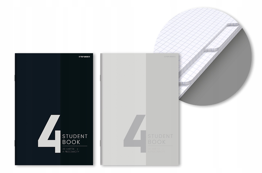 Klasyczne zeszyty Top 2000 Student Book to niezastąpione narzedzie do notowania dla studentów i nie tylko. Specjalnie wyciete registry umozliwiają prowadzenie az czterech przedmiotów jednocześnie . To pozwoli Ci zaoszczedzic czas i miejsce podczas zajec czy lekcji.