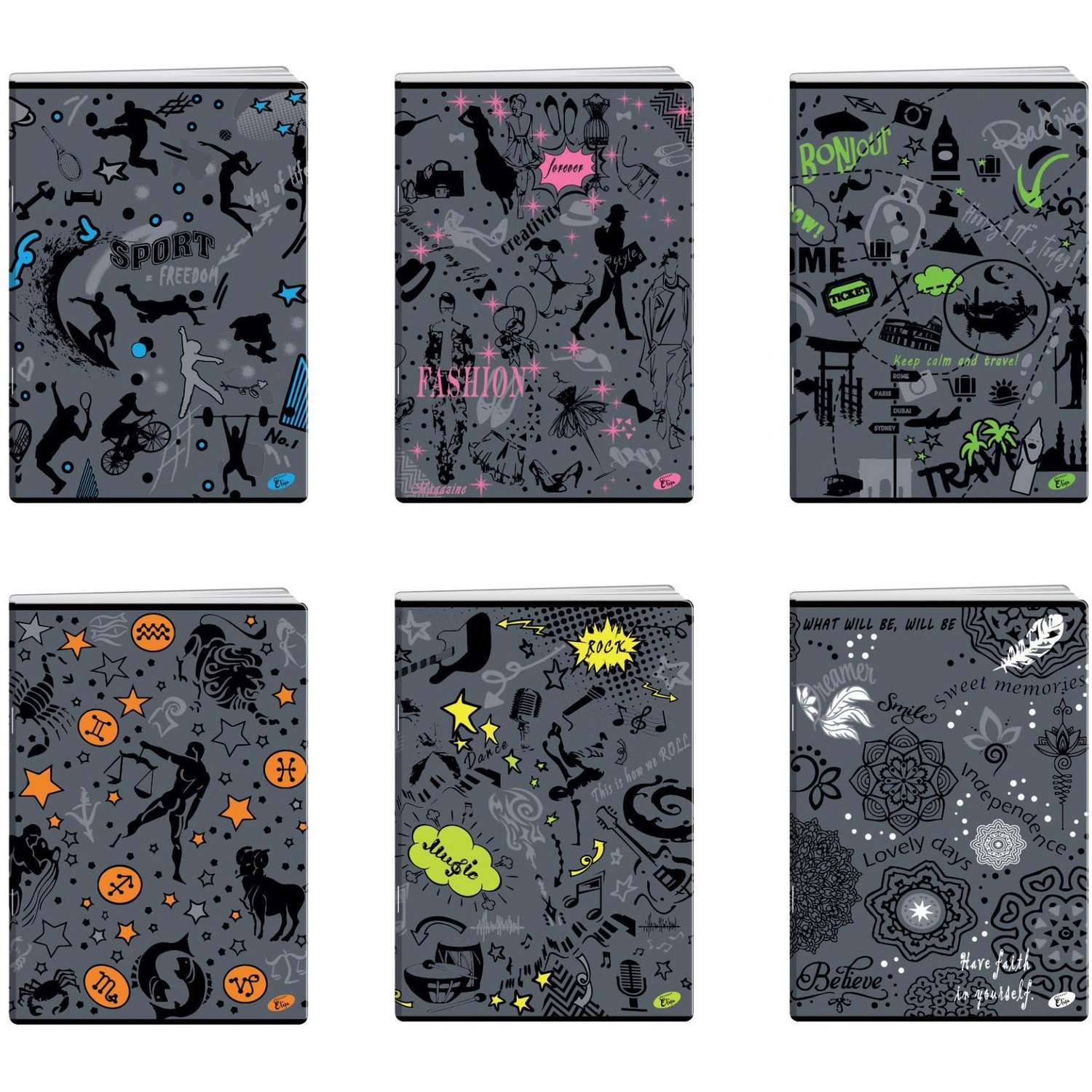 Kolekcja SYMBOLS to zeszyty z ciekawymi symbolami na matowych okładkach z elementami lakieru błyszczącego. Wszystkie pasje zostały pokazane graficznie - są tu zarówno zeszyty dla miłośników mody, astrologii, jak również muzyki. Zeszyt w miękkiej oprawie w formacie A5 zawiera 80 kartek w kratkę. Gramatura okładki 300g/m2. Okładka matowa z elementami lakierowanymi. Zaokrąglone rogi. Gramatura kartek: 80g/m2. Zeszyt posiada plan lekcji, margines, jak również miejsce na podpis.