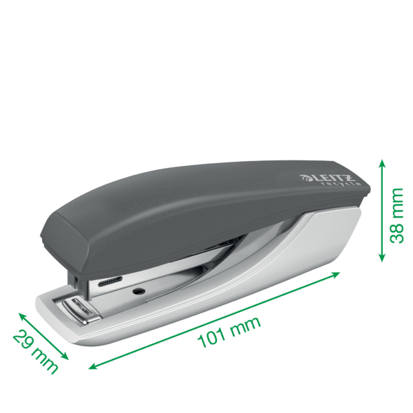 Efektowny i niezawodny minizszywacz wykonany z plastiku pochodzącego z recyklingu pokonsumenckiego, do użytku w biurze, w domu i w podróży. Mieści się w najmniejszym piórniku lub w kieszeni Twojej torby. W 100% nadaje się do ponownego przetworzenia - można go całkowicie zdemontować, oddzielając różne rodzaje materiałów. Opatentowana technologia Direct Impact oraz zszywki Leitz Power Performance P2 (nr 10) zapewniają doskonałe zszywanie za każdym razem. Ten poręczny minizszywacz idealnie pasuje do innych produktów z kolekcji Leitz Recycle - został wykonany z myślą o użytkowaniu przez wiele lat. Kolekcja nowoczesnych, przyjaznych dla środowiska artykułów biurowych świetnie zaprezentuje się zarówno w domu, jak i w biurze. Dzięki przyjaznej dla środowiska linii produktów Recycle oferowanej przez firmę Leitz masz wpływ na poprawę zarówno środowiska biurowego, jak i całej naszej planety.