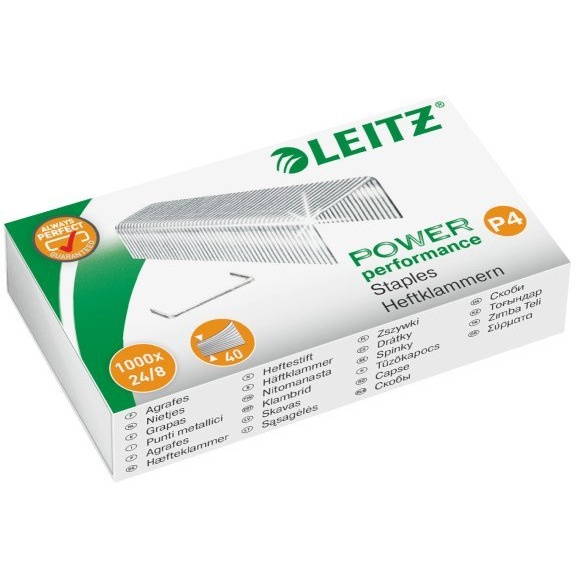 - Zszywają do 40 kartek (80 gsm) - Każde opakowanie zawiera 1,000 zszywek - Najwyższa jakość, rekomendowane do stosowania we wszystkich markach zszywaczy. - długość nóżki 8 mm - Do 10 lat gwarancji na zszywacze Leitz przy użyciu zszywek Leitz